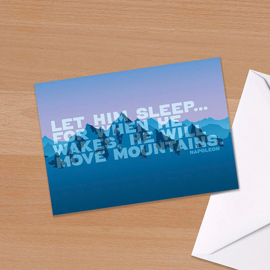 New baby boy card - "Let him sleep for when he wakes he will move mountains" new baby, Congratulations new arrival, baby shower, Typographic