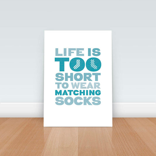 A funny motivational art print for anyone who feels that Life is too short to wear matching socks