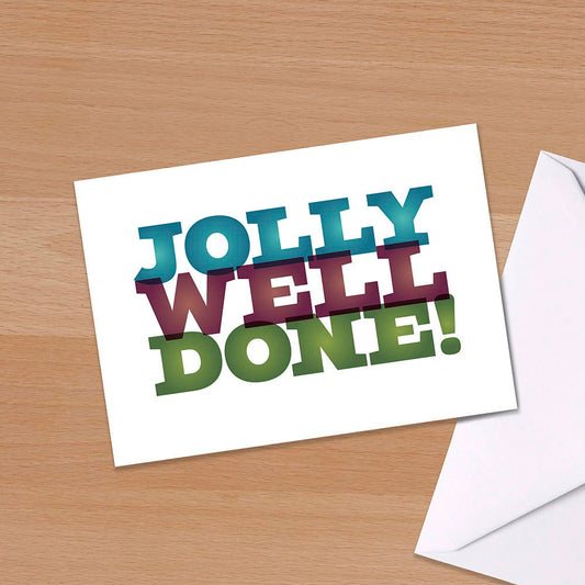 Congratulations Card - "Jolly Well Done", Graduation Card, Well done in your exams, Driving test card, GCSEs, A-Level, Typographic