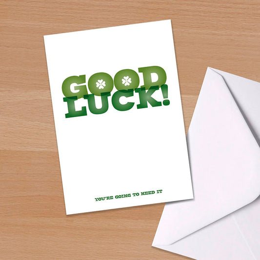 Good Luck Card , You're going to need it, Funny Good Luck Card, Typography, Lucky Four Leaf Clover, Greeting Card Good Luck