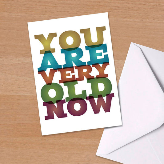 Funny birthday card, Greetings Card, You Are Very Old Now, humorous birthday, 40th birthday, 50th birthday, milestone birthday, typography