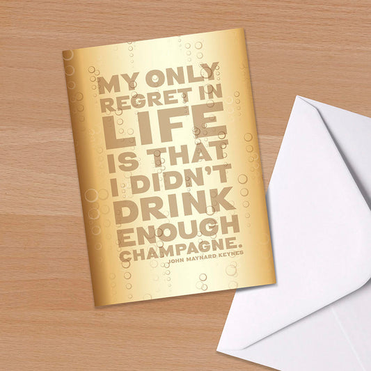 Champagne Birthday card, "My only regret in life is that I didn’t drink enough Champagne", John Maynard Keynes, Literary quote,