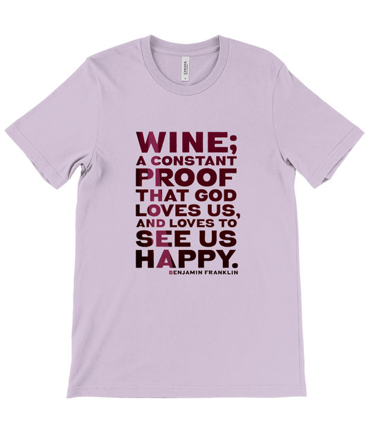 Canvas Unisex Crew Neck T-Shirt - Wine is constant proof that God loves us and likes to see us happy - Benjamin Franklin (WHITE)