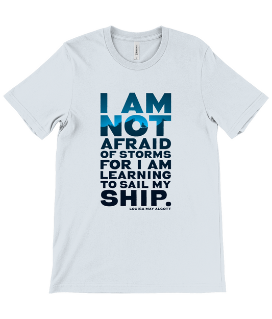 Canvas Unisex Crew Neck T-Shirt - "I am not afraid of storms for I am learning to sail my ship" Louisa May Alcott, Little Women