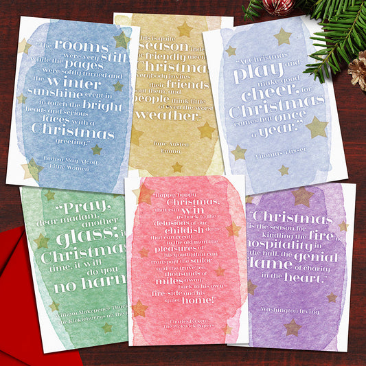 Set of 6 Literary Quote Christmas Cards - Perfect for book lovers, includes festvive quotes from Little Women, Emma, Pickwick Papers