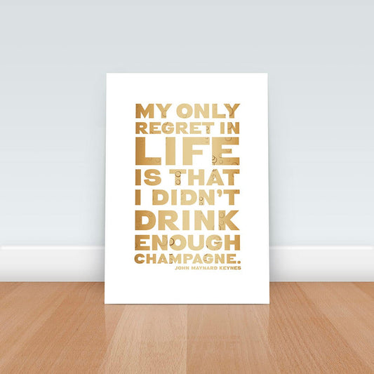 Champagne quote Wall Art, "My only regret in life is that I didn’t drink enough Champagne", John Maynard Keynes, Literary quote, Motivation